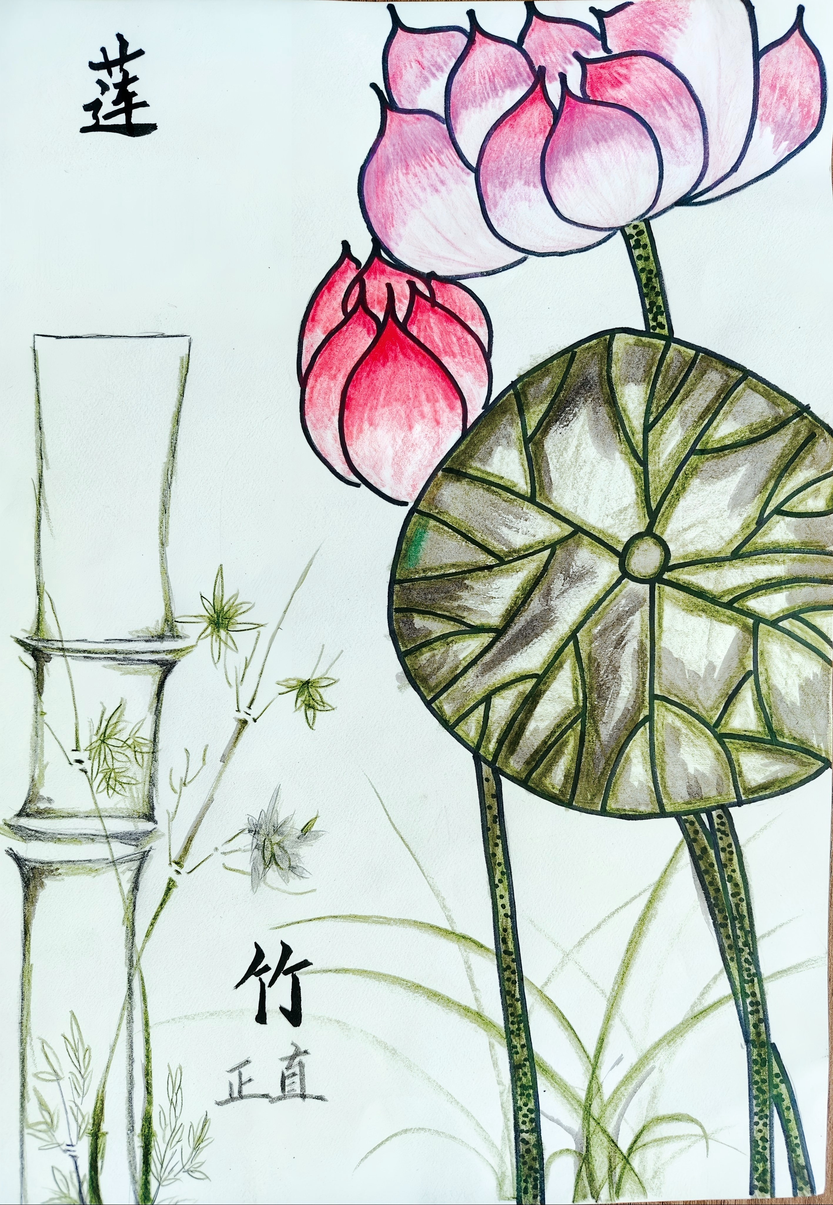 莲竹意韵 钢笔淡彩 初二(5)班 董新悦