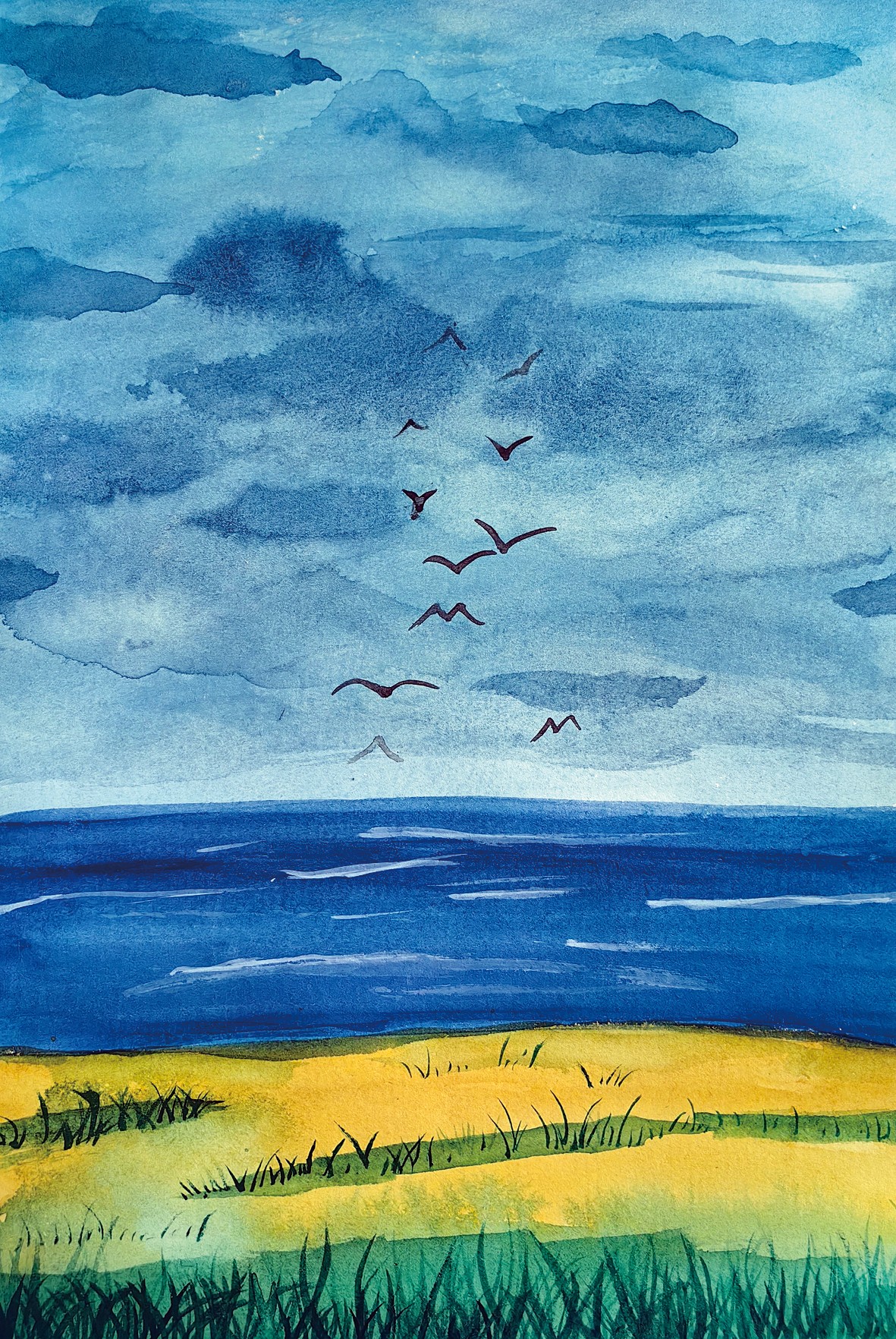 海边风景 水彩 李圆梓