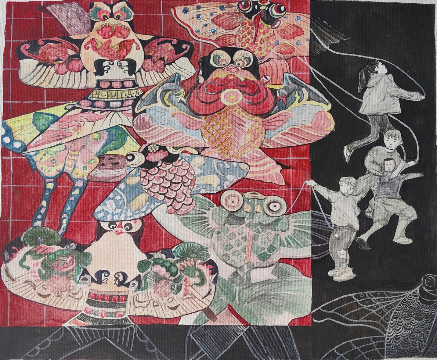 忙趁东风放纸鸢 水彩 张歆舒