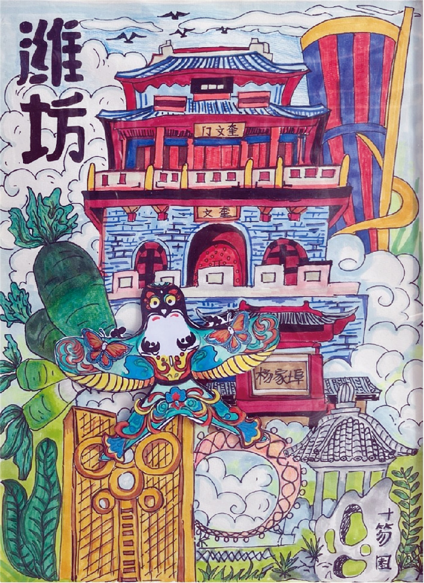 家乡风情 钢笔淡彩 潍坊文华国际学校 李纾羽