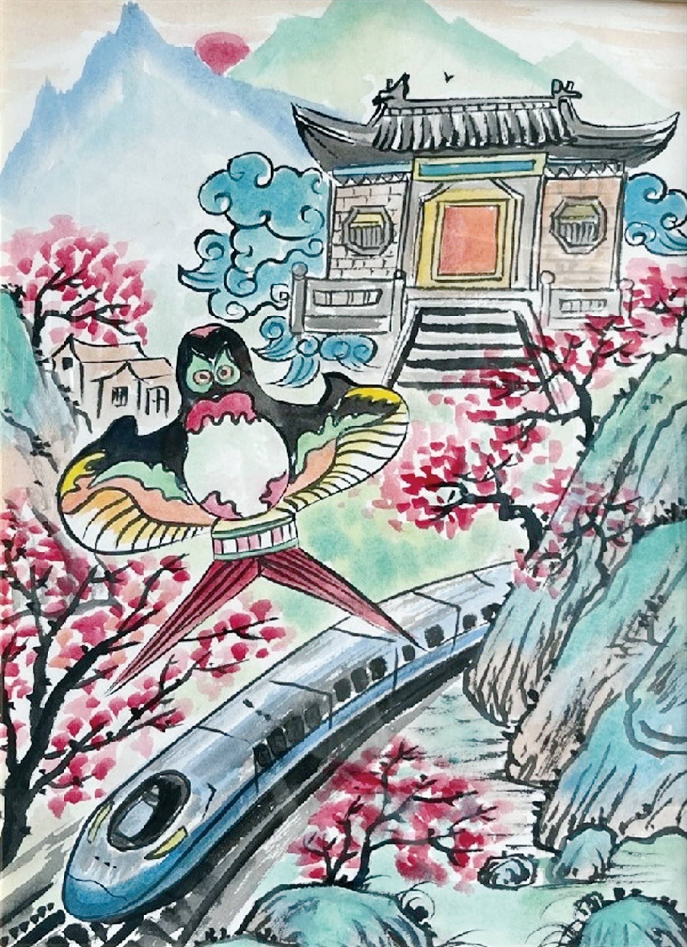 故乡的风筝 国画 潍坊文华国际学校 娄镃涵